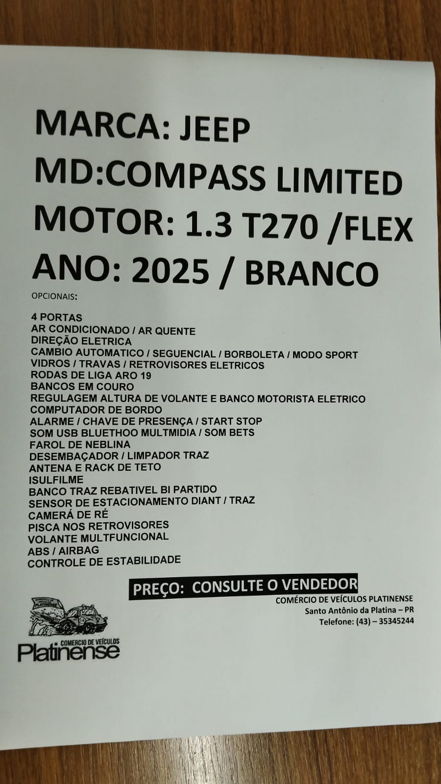 » Veículos » COMPASS LIMITED 1.3 T270 AUTOMATICA 2025 BRANCA